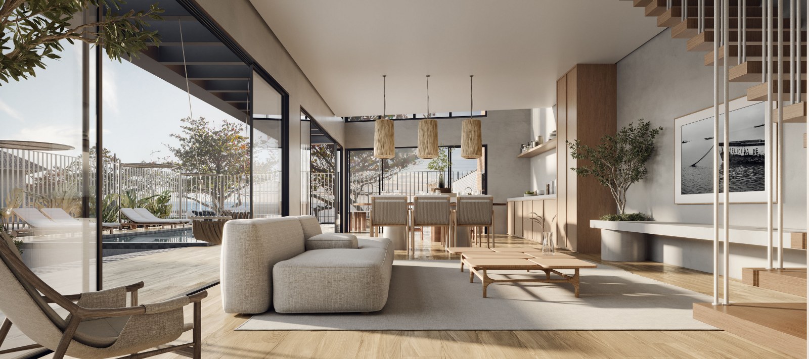 Metragens generosas, 2 a 4 suítes, 2 a 4 vagas, personalização, eficiência energética com painéis solares e lazer com piscinas, academia e espaços gourmet.