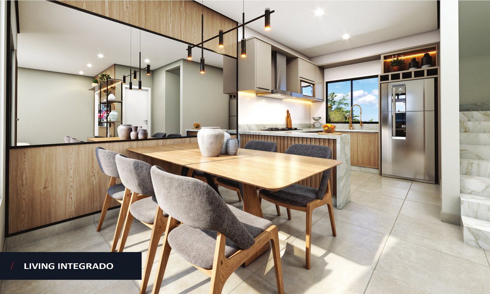 O projeto contempla 3 unidades de sobrados com 2 pavimentos, cada uma com 97 m², 3 dormitórios e 1 suíte, com living e sacada integrados.
