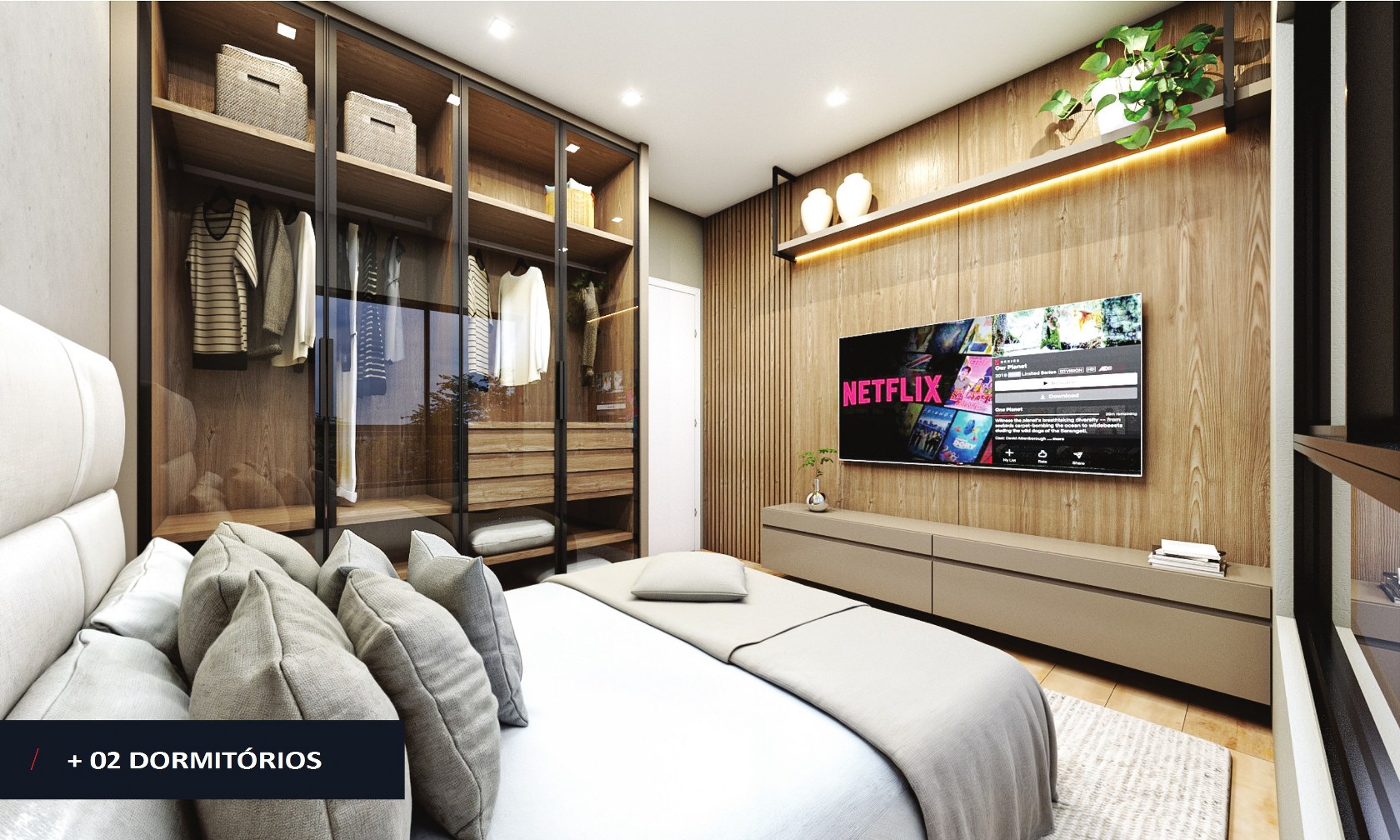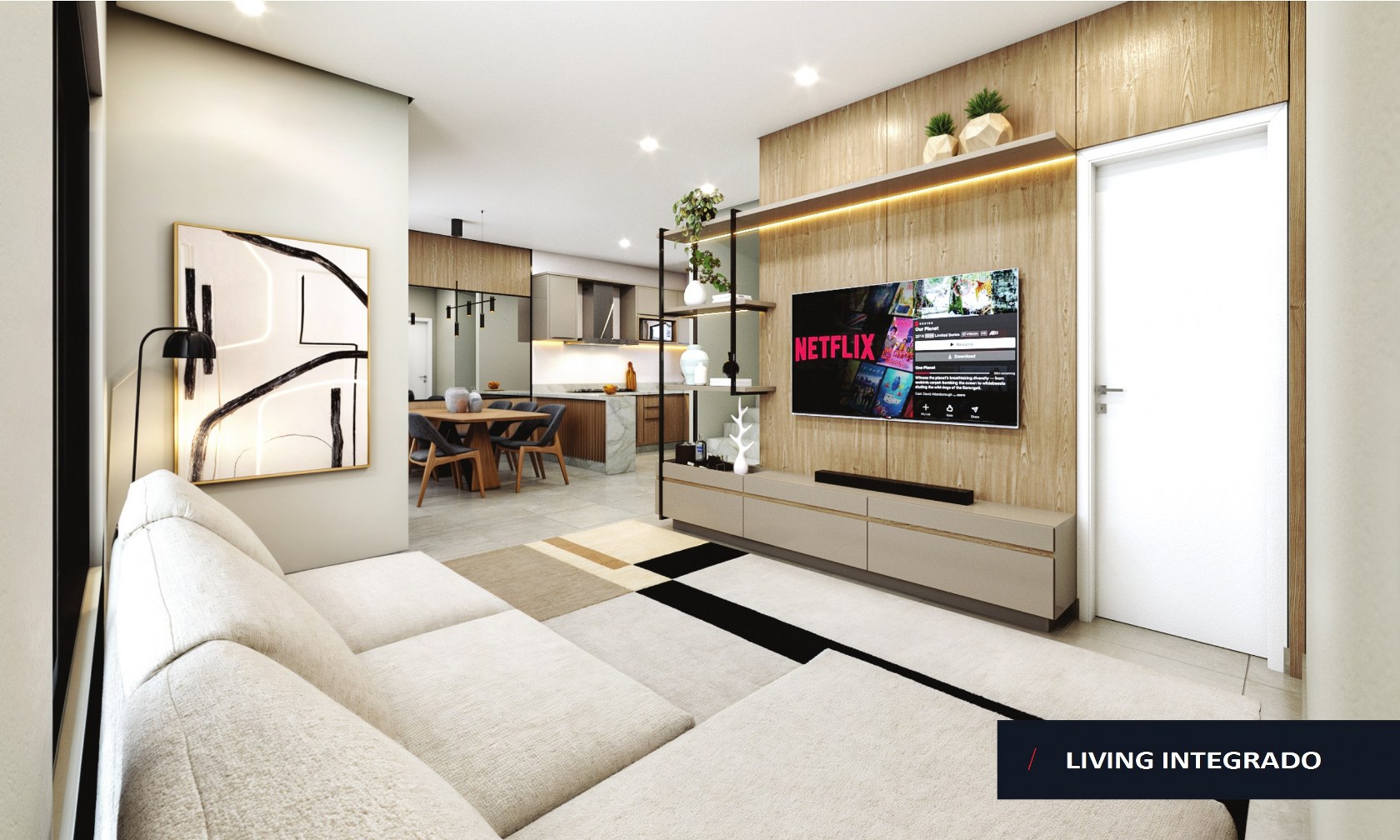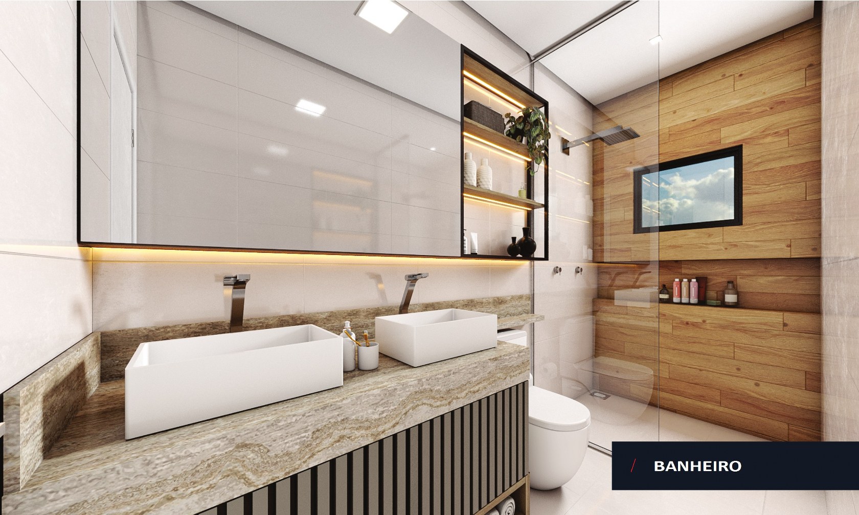 O design prioriza funcionalidade e conforto, com rebaixo em gesso, porcelanato nas áreas sociais, laminado nos dormitórios e paredes com conforto acústico.