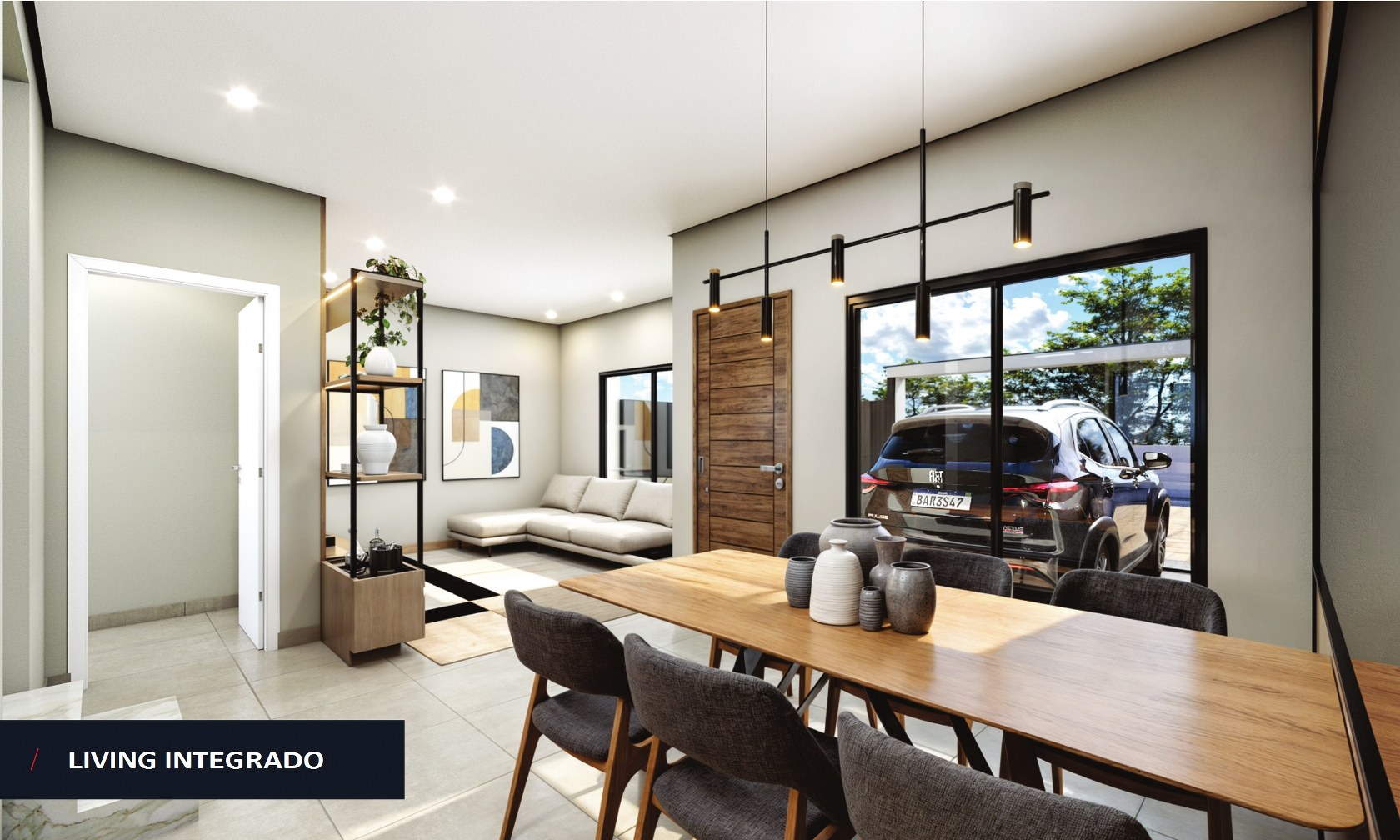 As unidades possuem 97 m² privativos com 3 dormitórios, sendo 1 suíte, living com sacada integrada e projeto com rebaixo em gesso, porcelanato nas áreas sociais e laminado nos dormitórios para equilíbrio térmico e acústico. Cada sobrado conta com infraestrutura para ar-condicionado, água quente e fria, portas sólidas em laca branca e portão eletrônico, além de pontos de climatização no living e nos dormitórios.