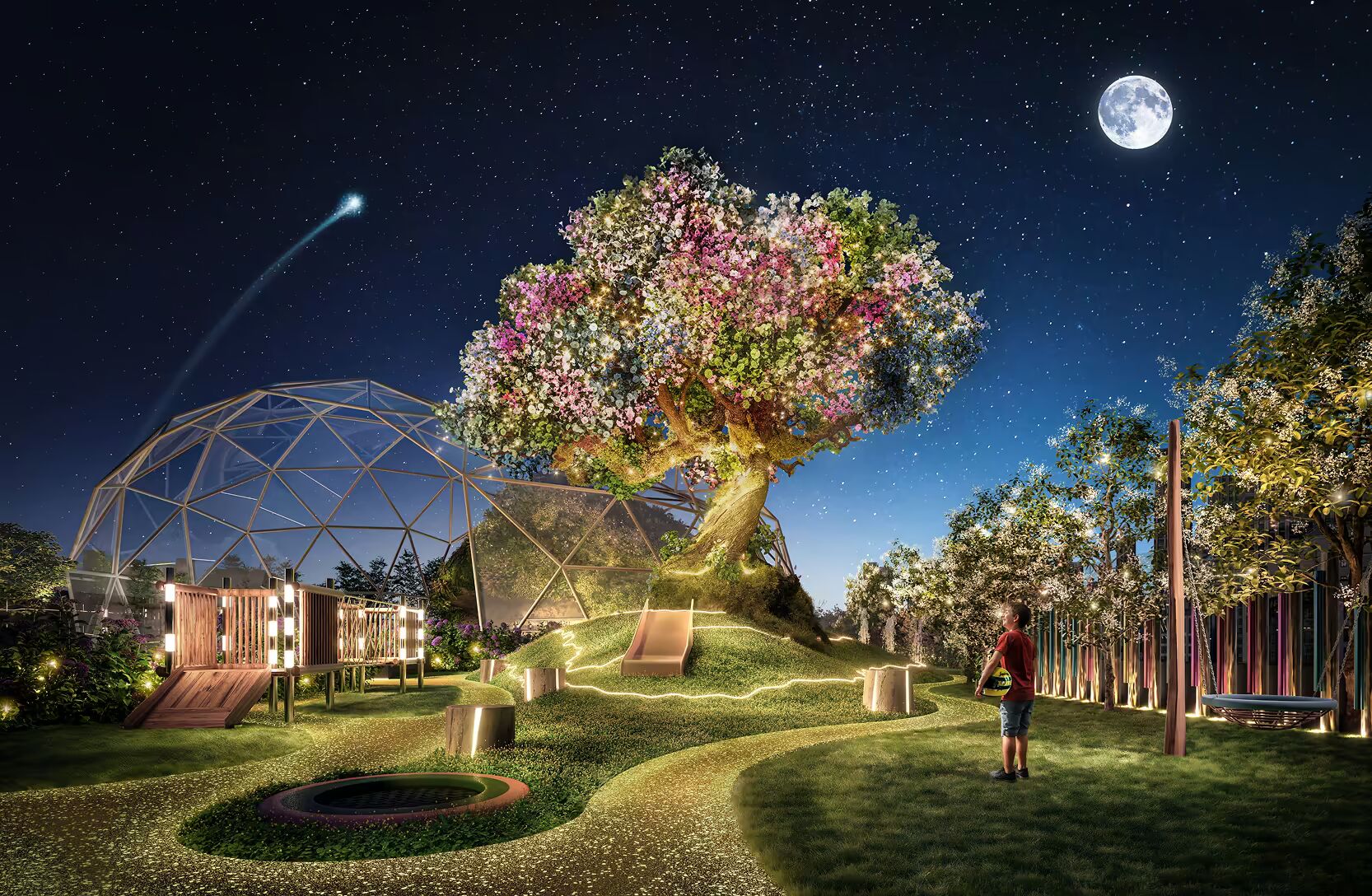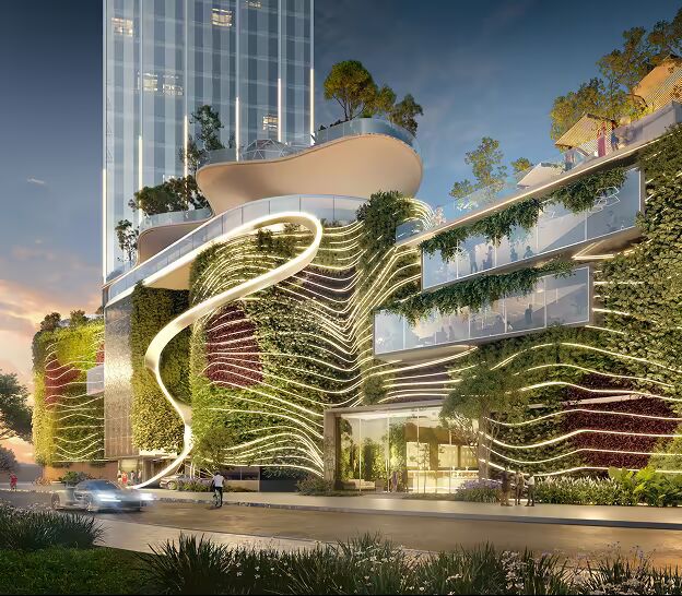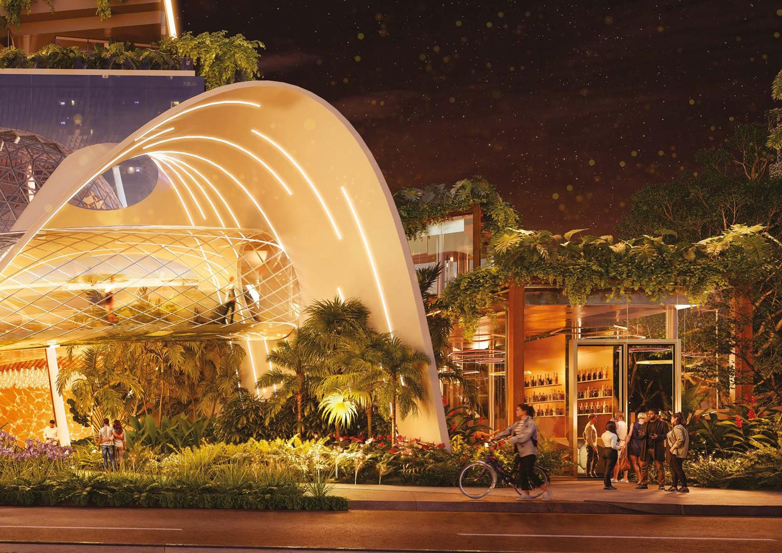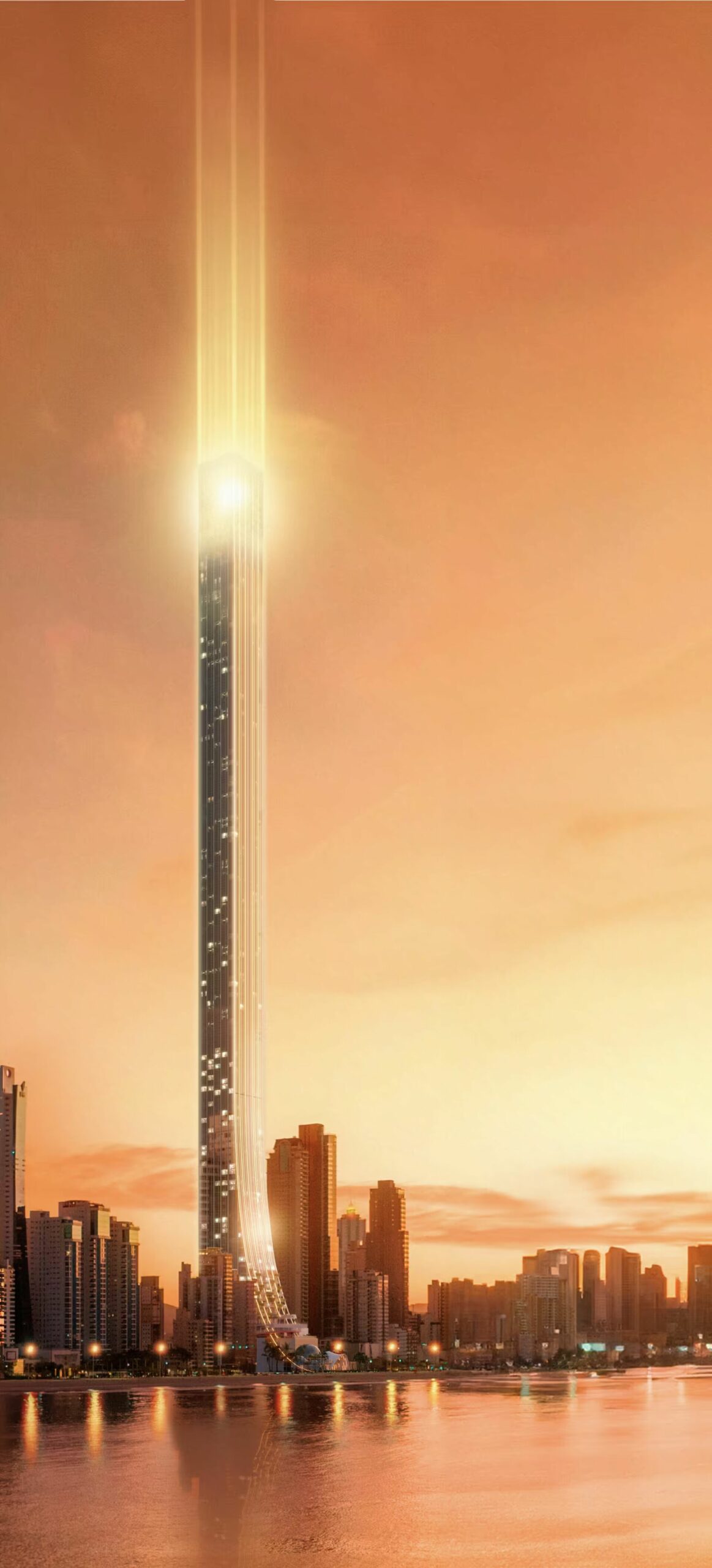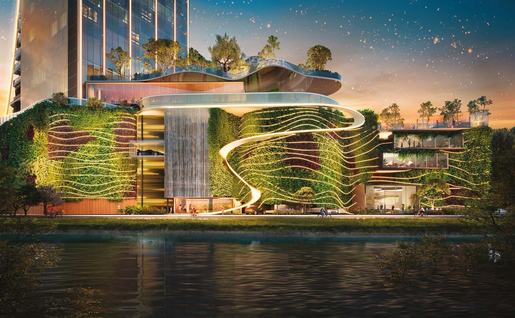 O empreendimento traz piscinas suspensas, spa a 212 metros, kart experience, festa a 464 metros, elevador para carros nas mansões suspensas, tecnologia para mitigação de ventos e design assinado por integrantes da família Senna.