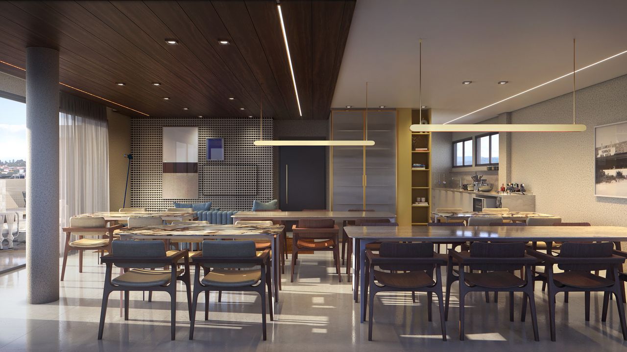 O design foca em funcionalidade e acabamentos modernos, incluindo porcelanato, varanda e infraestrutura para água quente, com projeto assinado por um escritório de arquitetura de renome.