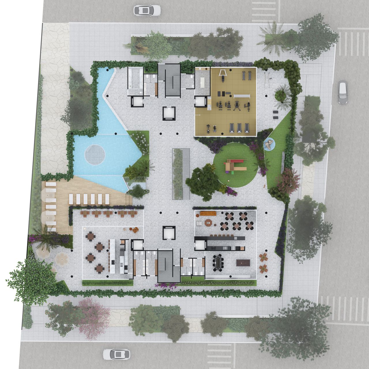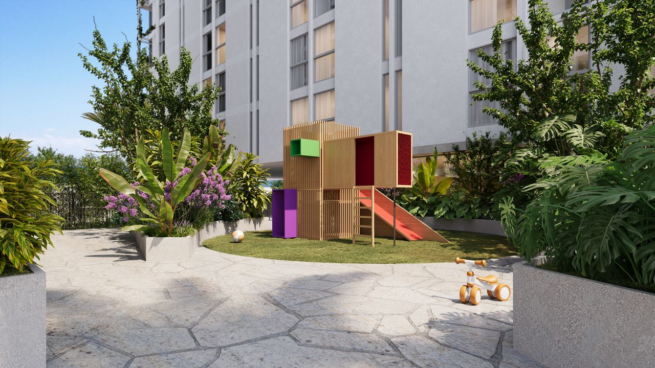 O condomínio do Vero foi planejado para oferecer lazer completo e segurança robusta. A área de lazer inclui piscinas adulto e infantil, academia de primeira linha, espaço gourmet integrado à piscina, pub e sala de jogos. O sistema de segurança é reforçado com guarita blindada, duplo controle de acesso e controle de acesso facial. A sustentabilidade é vista no paisagismo em todas as fachadas e na infraestrutura para recarga de carro elétrico. Oferecemos ainda serviços como sala de reuniões e sala de encomendas.