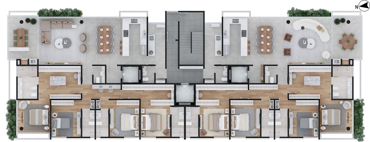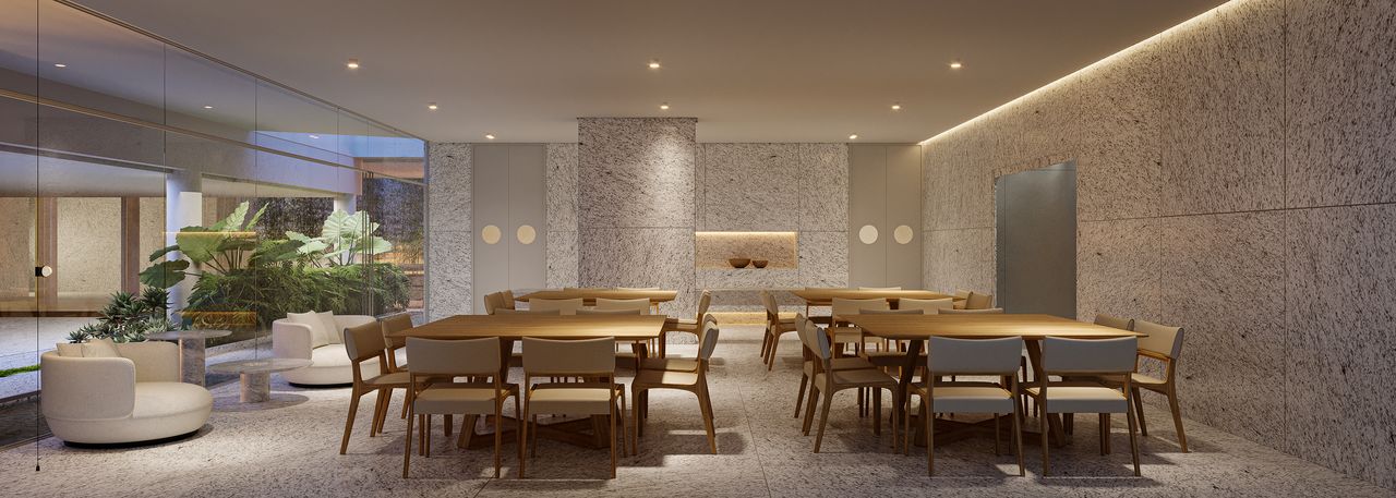 Os apartamentos contam com porcelanato de grande formato, piso aquecido nos banheiros, infraestrutura para água quente, espera para split e preparação para fechamento de sacada.