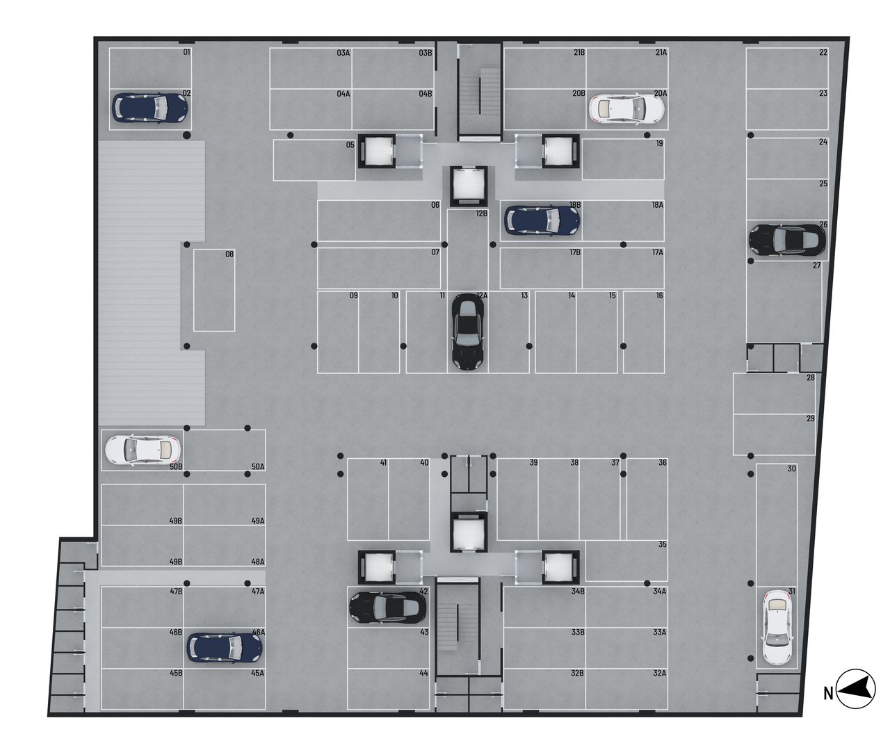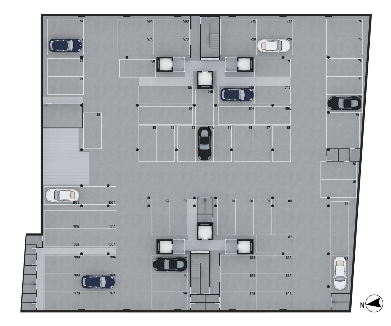 O acesso veicular é realizado por TAG, e há infraestrutura para recarga de carro elétrico nas garagens.