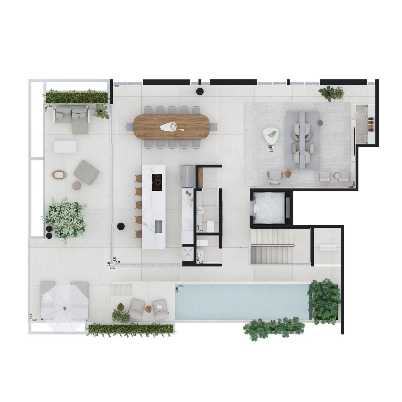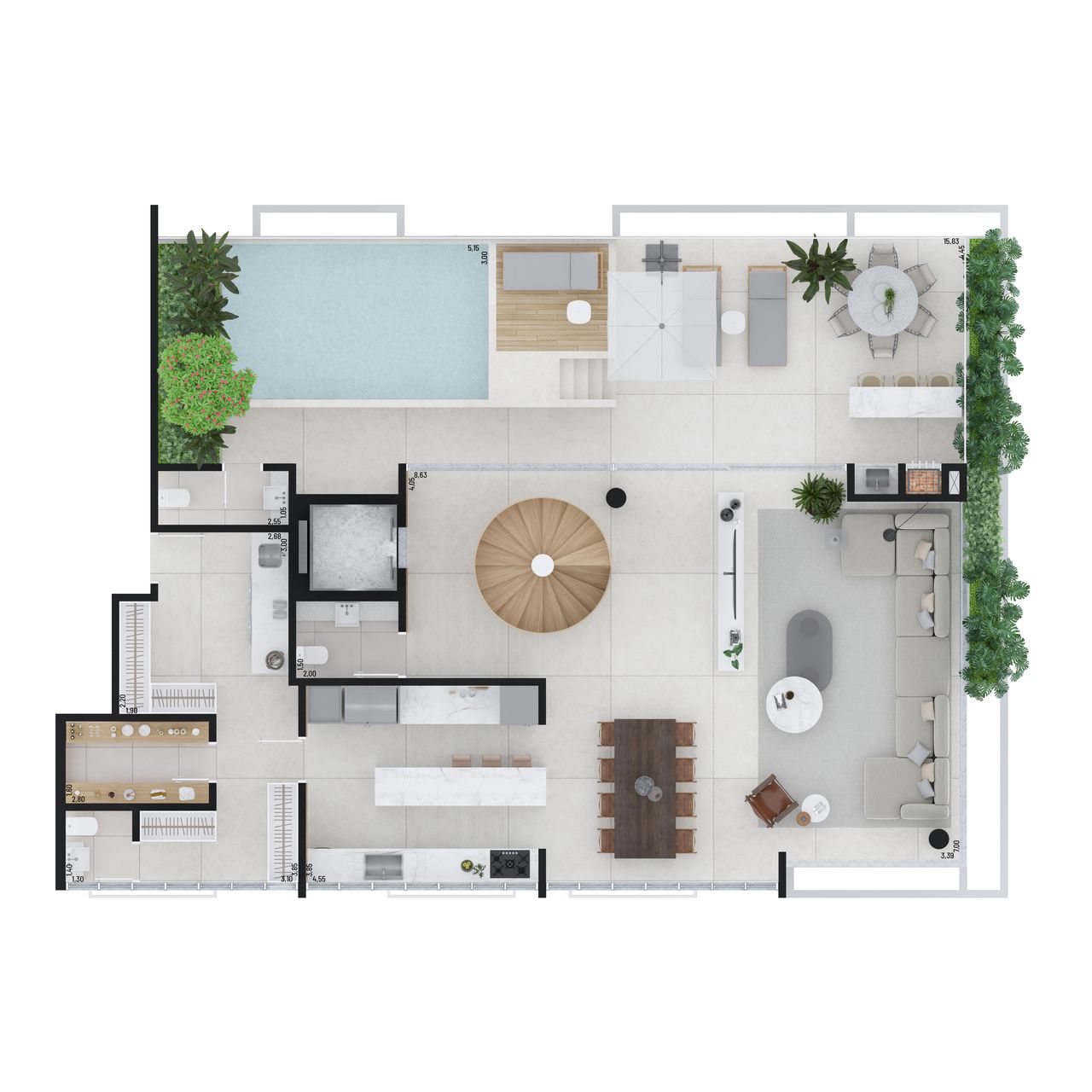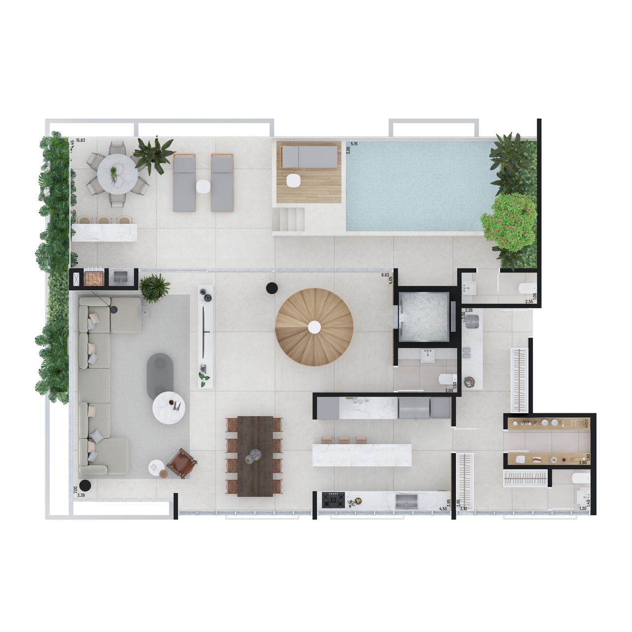 O Vero oferece apartamentos e coberturas duplex, com 4 dormitórios e 4 suítes, com áreas privativas que variam de 209 m² a 408 m².