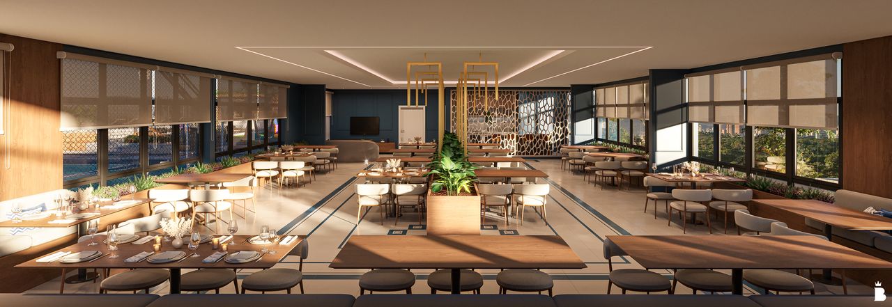 O condomínio conta com piscinas, sauna, quadra poliesportiva, espaço pet, salão de festas, espaço gourmet e áreas de convivência como o Fire Place.