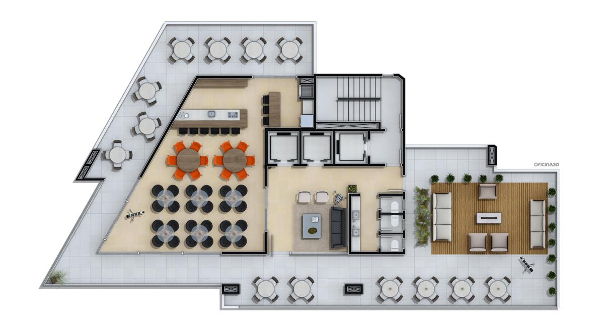As coberturas reúnem exclusividade e conforto em ambientes amplos e integrados. Com metragens até 171m², possuem 3 dormitórios (sendo 2 suítes), terraço privativo, churrasqueira e possibilidade de piscina. Cada detalhe foi pensado para oferecer o máximo de privacidade e uma vista panorâmica de Itajaí e da Marina.