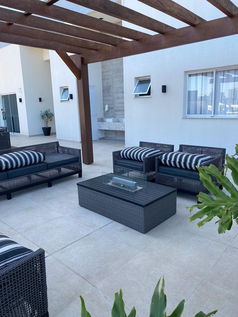 O design é contemporâneo e funcional, com acabamentos em porcelanato, gesso, integração de ambientes e vista panorâmica. O projeto foi assinado por escritório de arquitetura de renome.